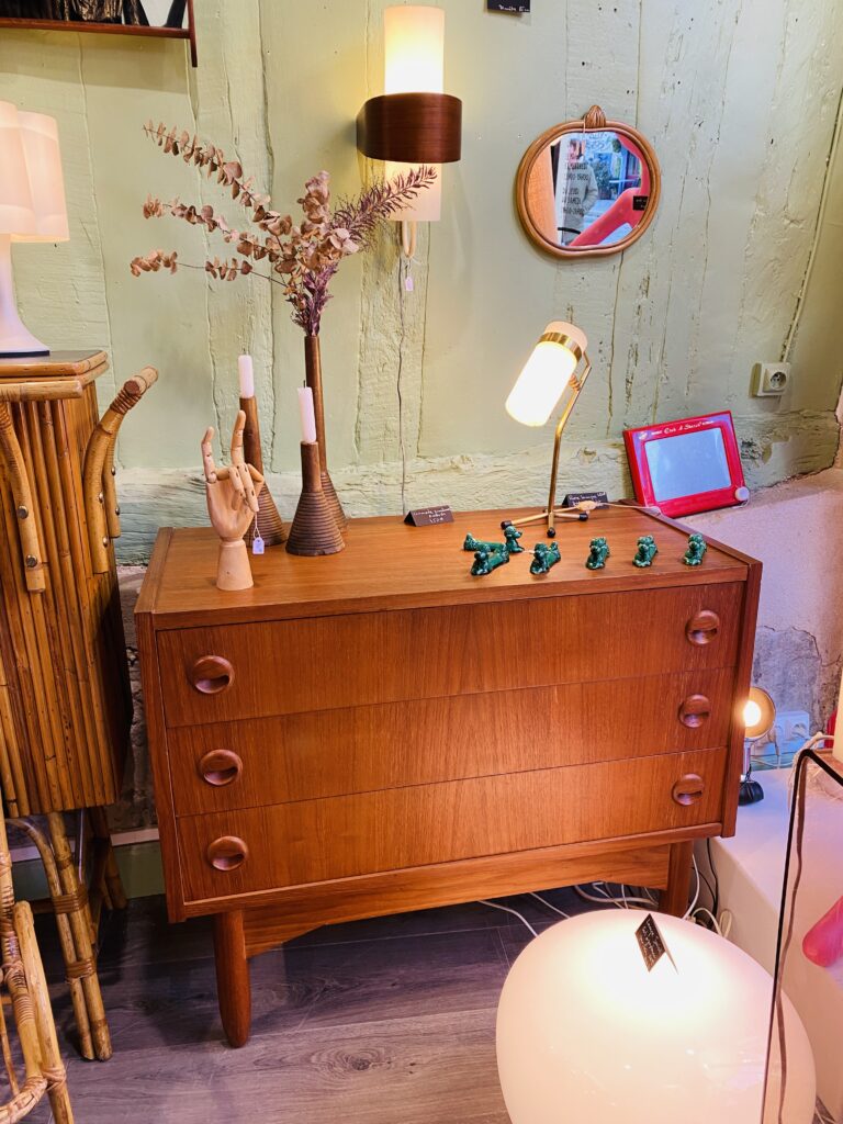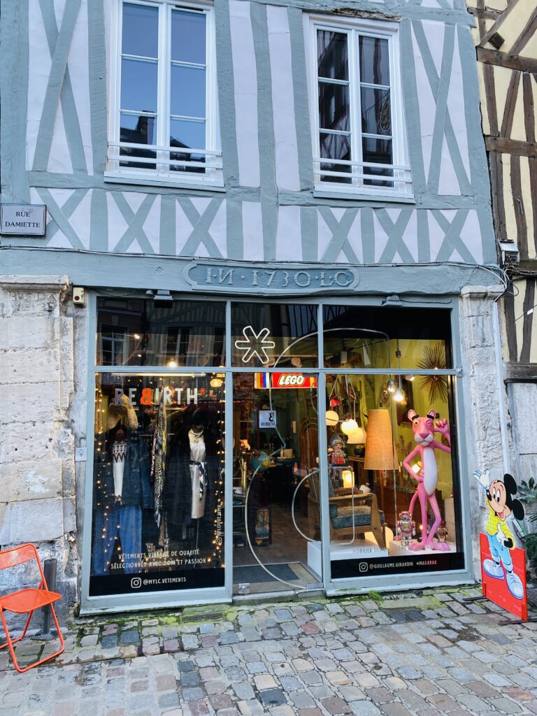 Rouen a vraiment de quoi combler les amateurs de chine, et j’ai été bluffée par les adresses que vous m’aviez recommandées. Jacotte et Javotte a été un énorme coup de cœur😍 : une brocante pleine de caractère, nichée derrière une vitrine art déco, où chaque recoin dévoile une merveille. Nous avons aussi adoré Rebirth, un lieu vibrant mêlant fripes, bijoux upcyclés et déco rétro. Ces boutiques ont une âme, une vraie personnalité.