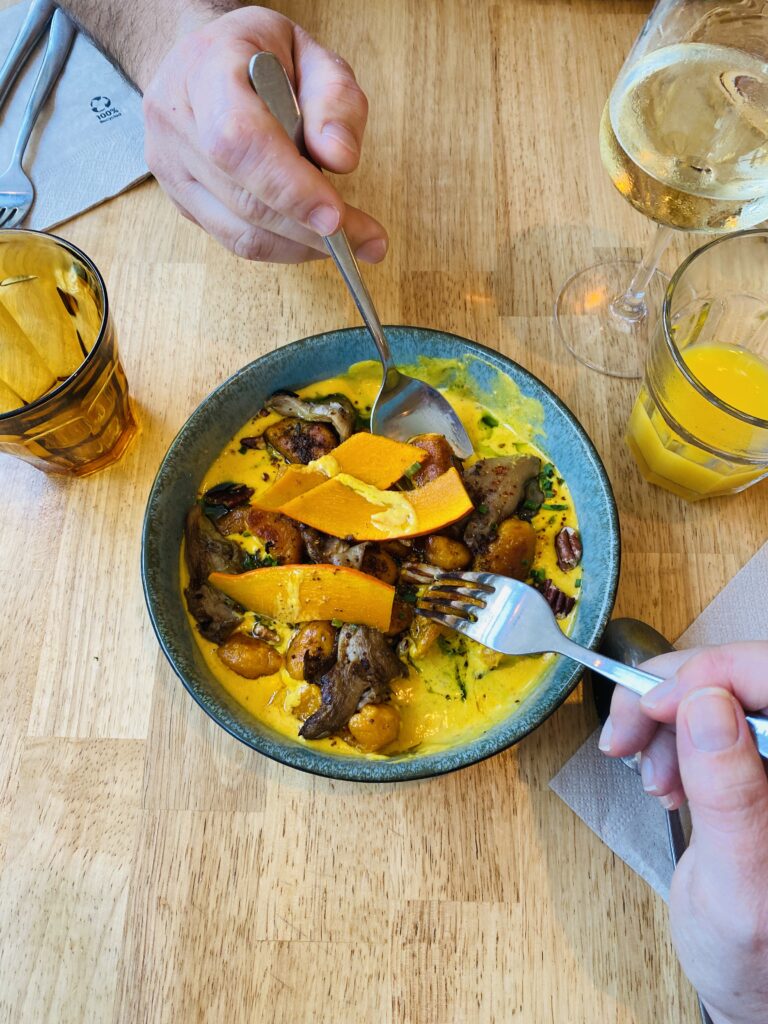 Nous avons commencé par une entrée mémorable, digne d’un resto étoilé : des gnocchis de potimarron, une véritable explosion de saveurs. ⭐️