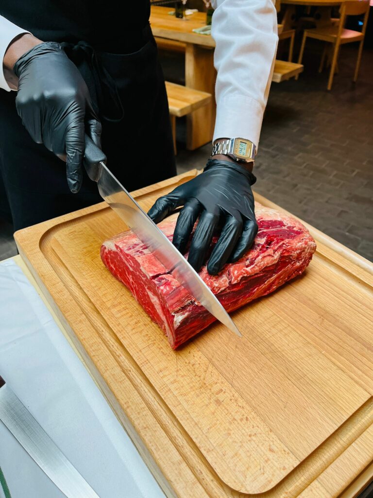 Nous nous sommes régalés, et la découpe sous nos yeux de la viande maturée sur place, véritable spécialité du restaurant, rend l’expérience très originale.🔪